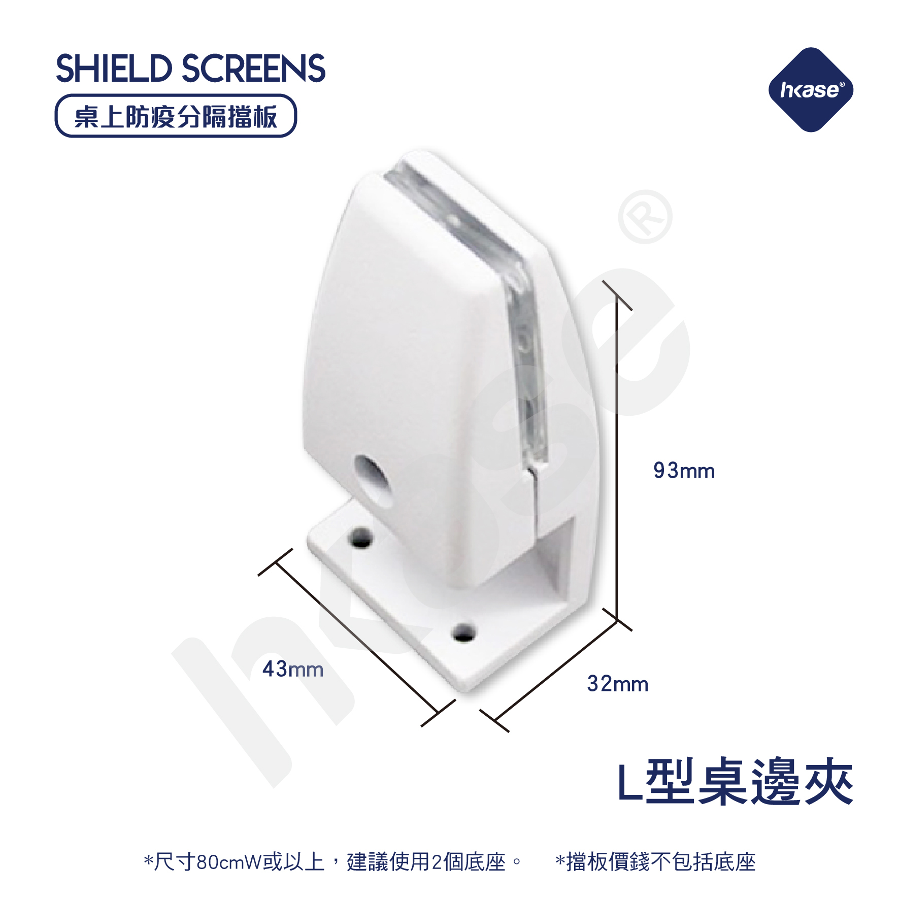 * 擋板尺寸寬度如超過80cm 或以上,建議使用2個底座