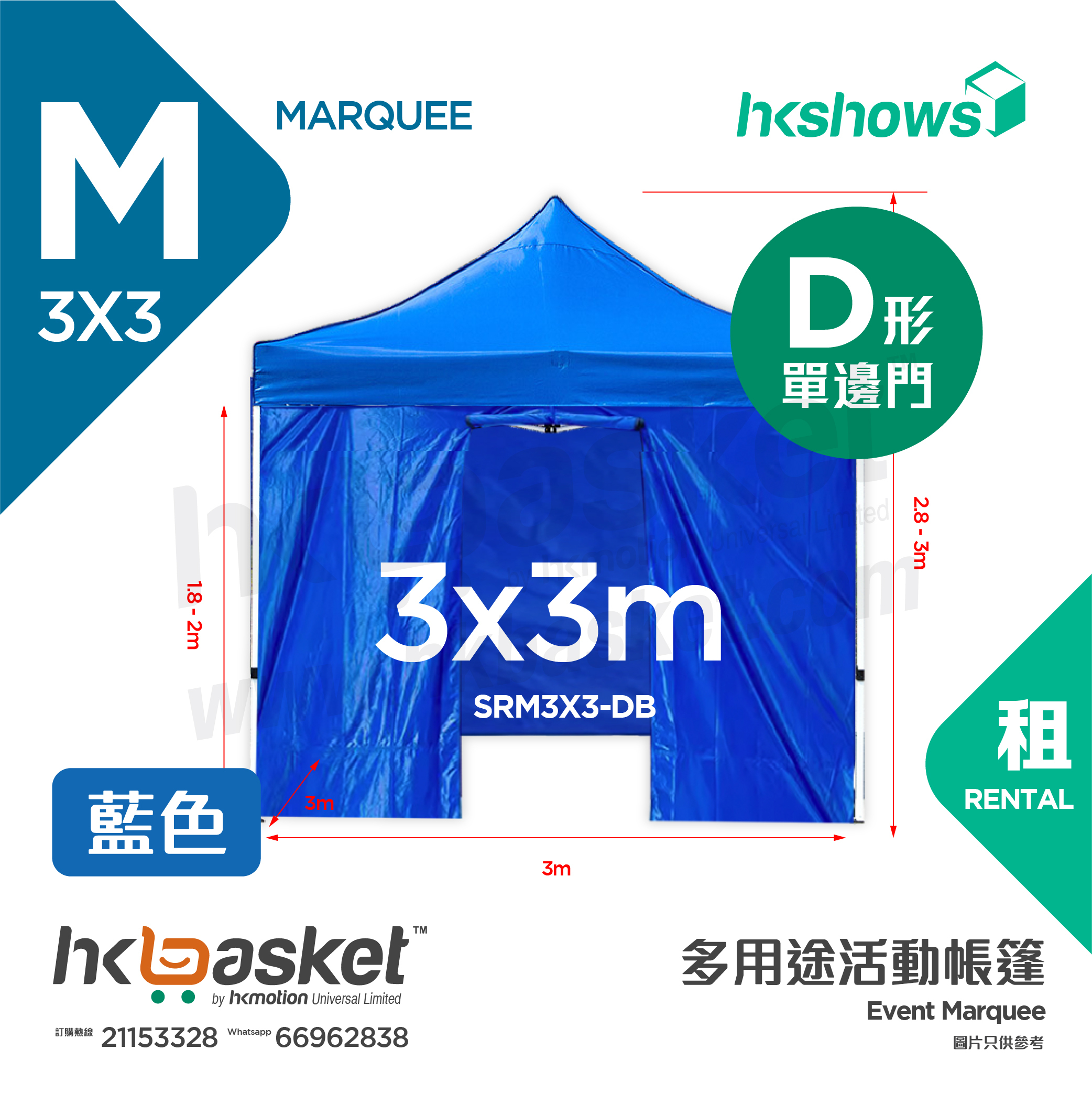 [Rental] HKshows 3x3m Event Tent Rental - D Shape Red/Blue SRM3X3-DR