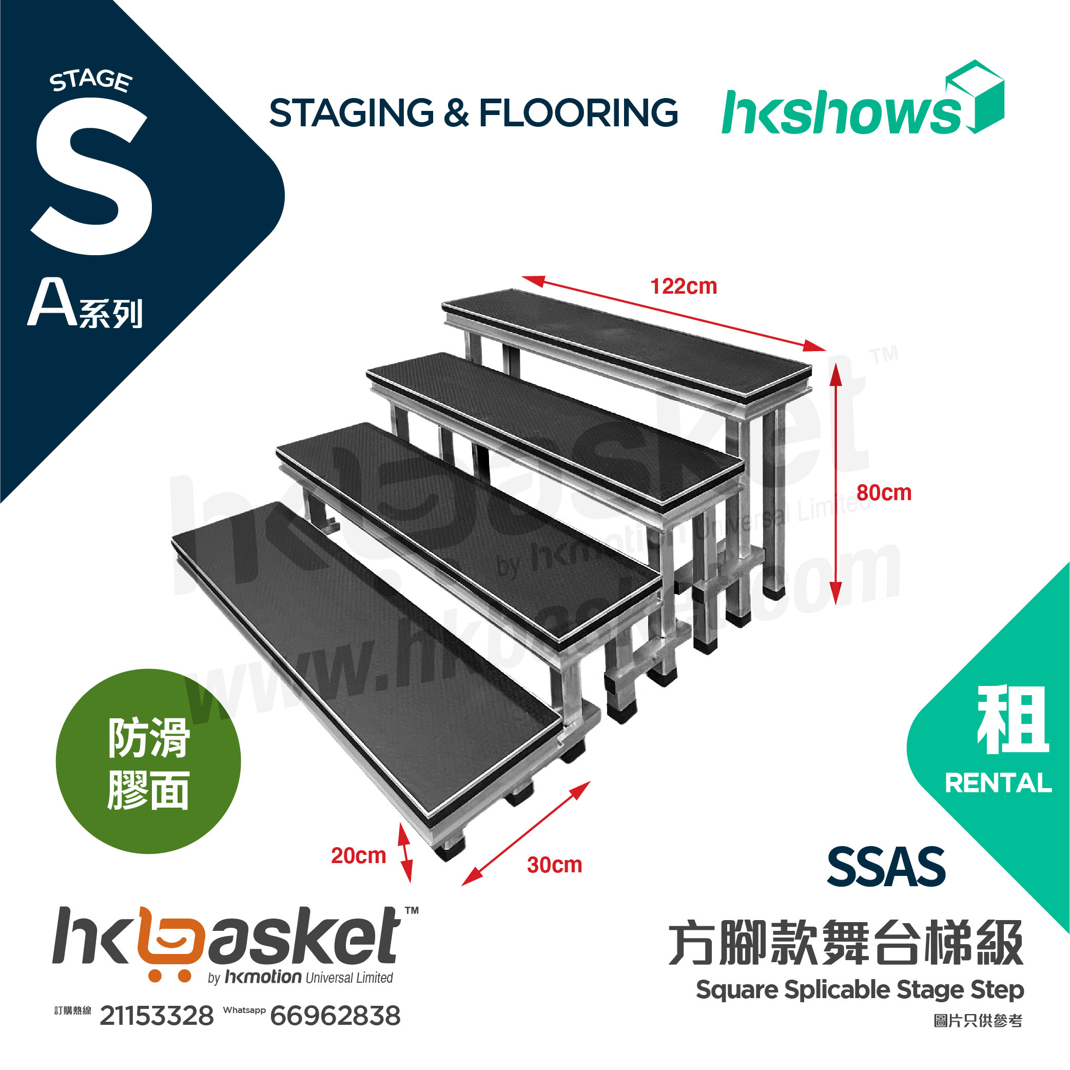 [Rental] HKshows square-footed stage steps (non-slip rubber surface and no skirt) - SSAS