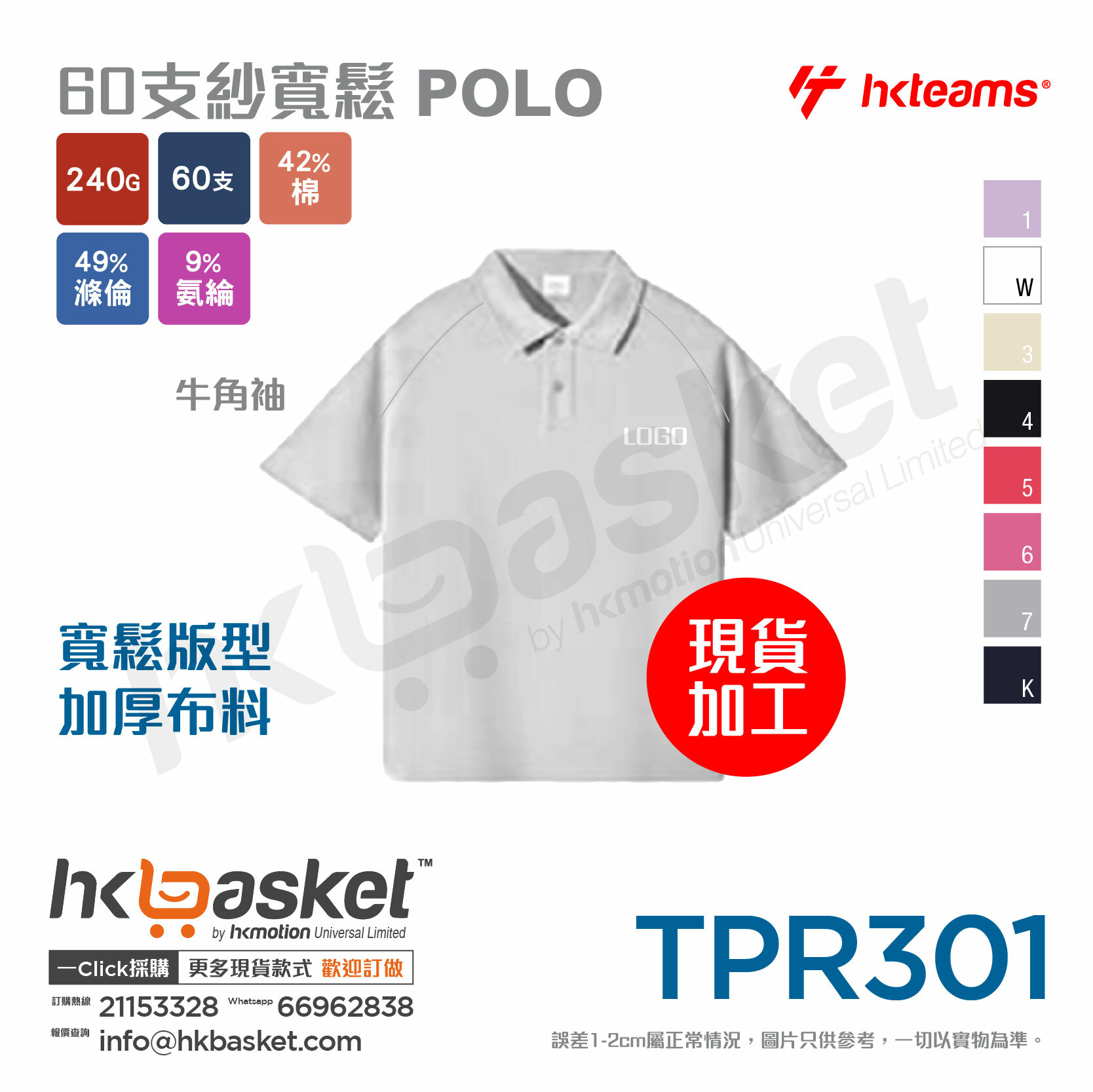 HKteams TPR301 60 count yarn loose POLO