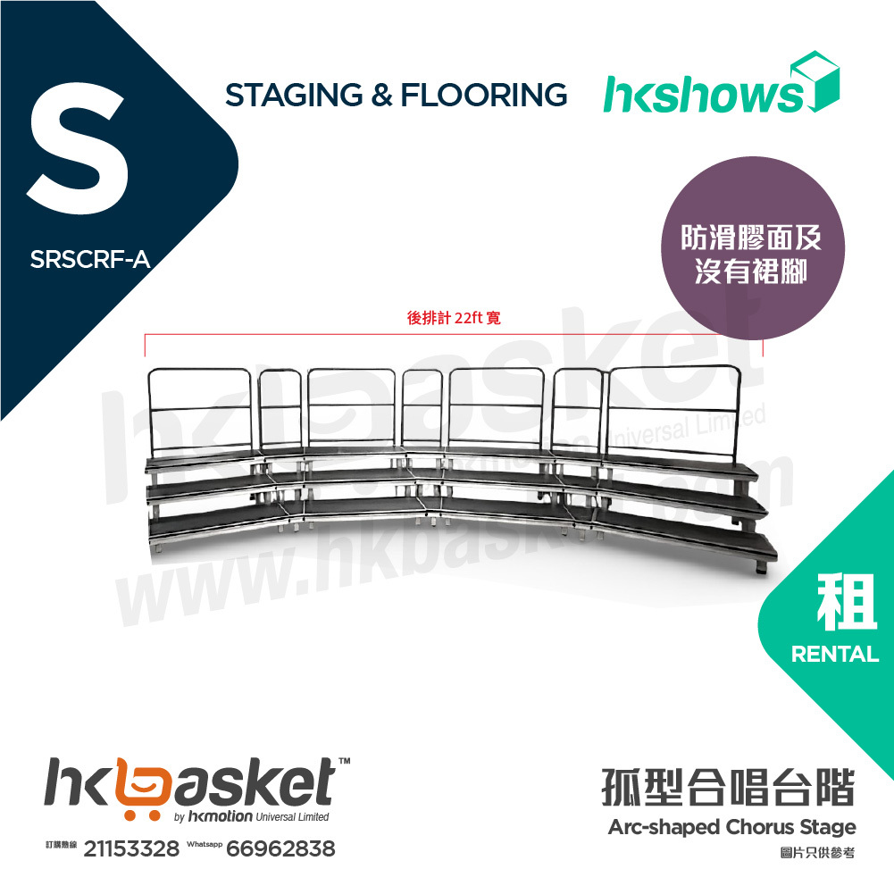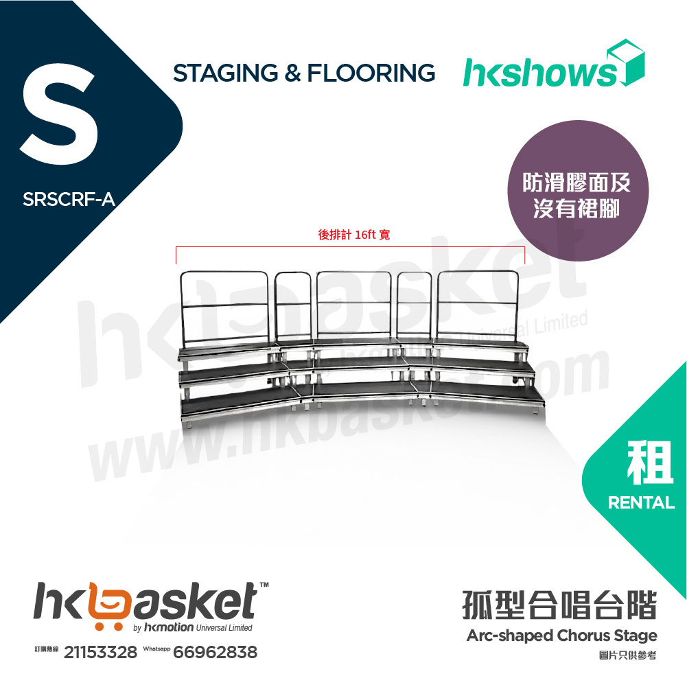 [租用] HKshows 孤型(帶護欄)合照合唱台階 (配灰色地氈及灰色裙腳) - SRSCRF-GG