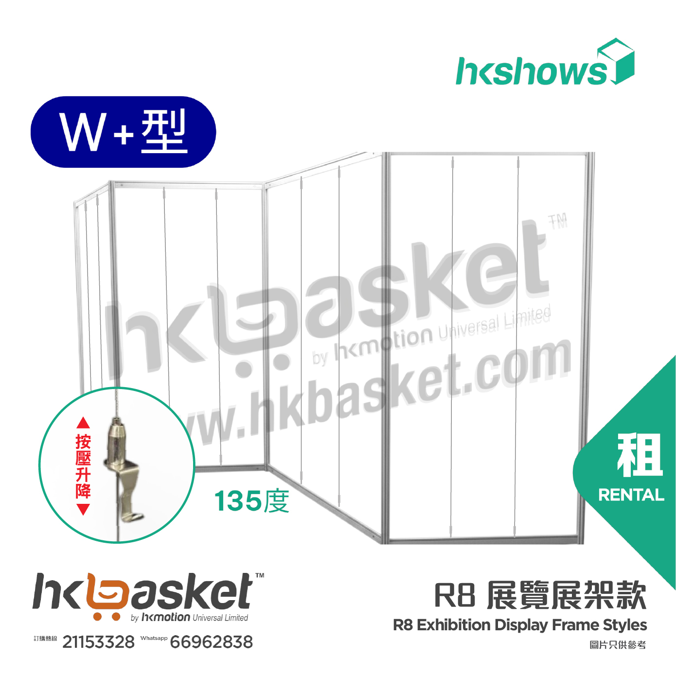 一個 W+ 字型組合由多格展板組成,客戶可按場地需要調整總格數(最低消費5格)